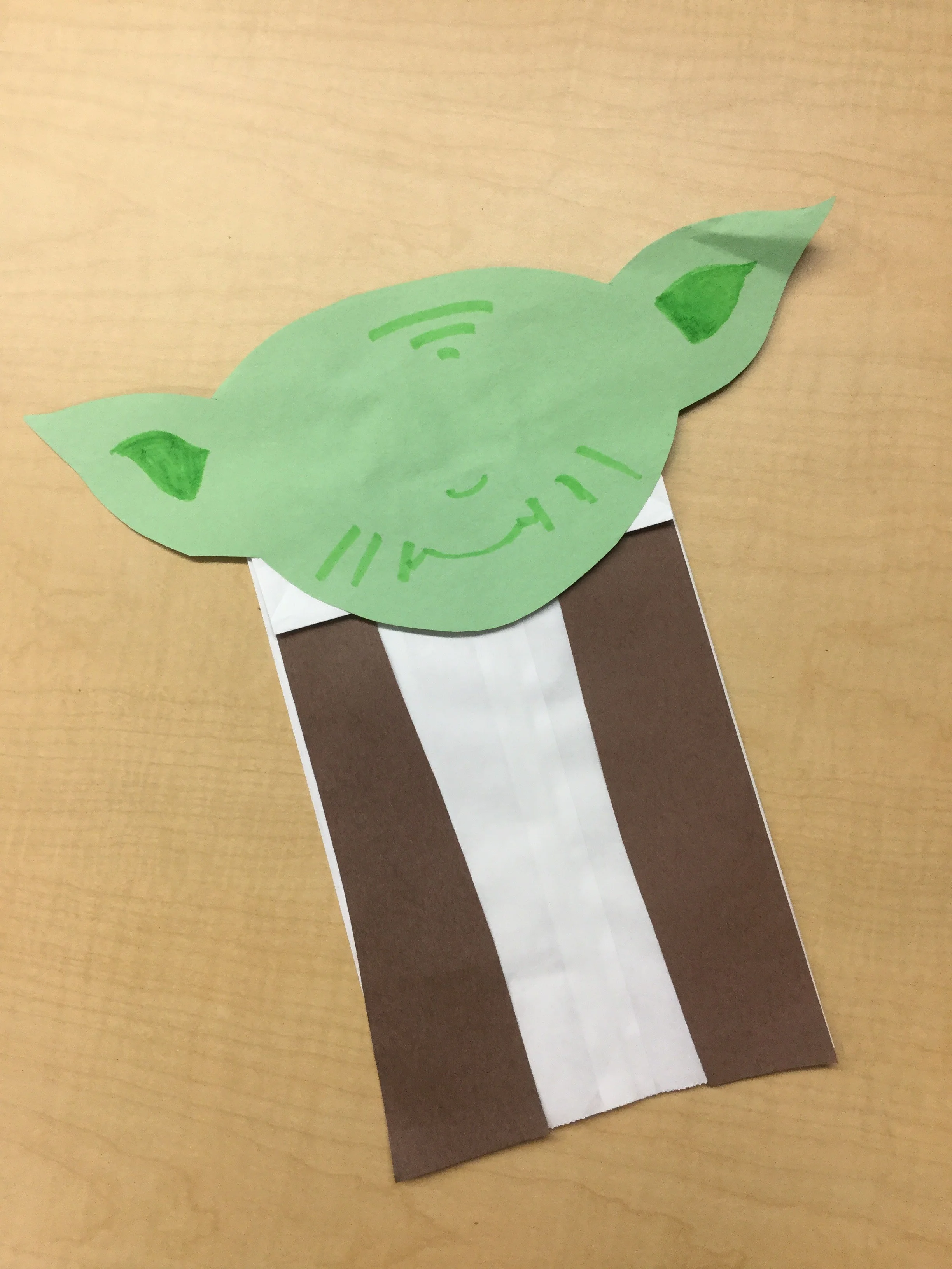 Drop in any time to make a paper bag puppet of Yoda, Darth Vader, or Chewbacca. May the Fourth be with you!